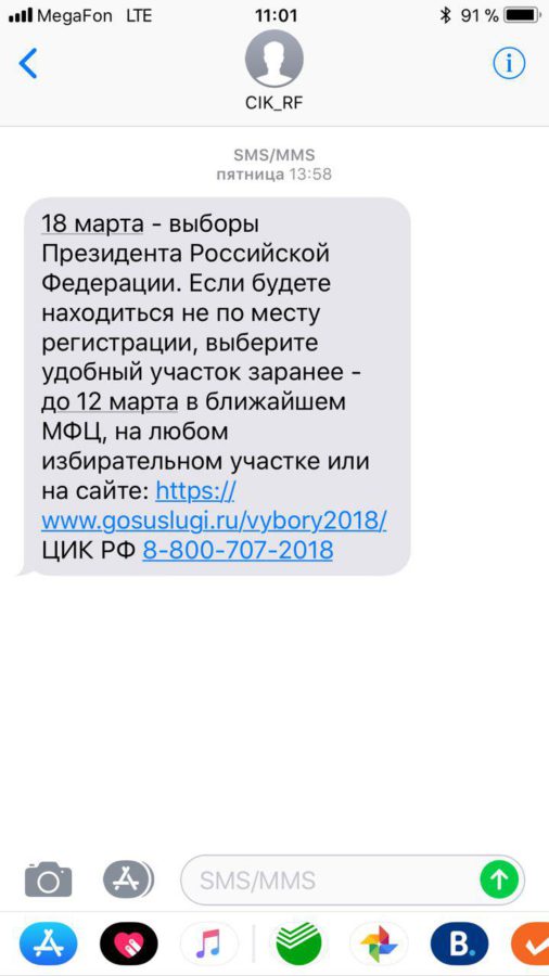 Такие сообщения рассылает ЦИК России. Фото: Александр Борисов
