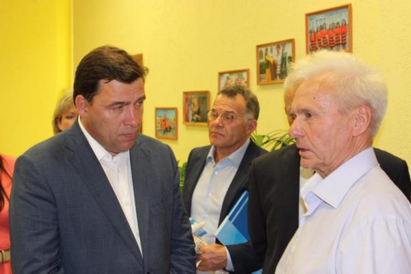 Губернатор Евгений Куйвашев в Волчанске пообщался с председателем городского Совета ветеранов Кимом Филаретовичем Отрадновым (справа). Фото: volchansk-kultura.ru