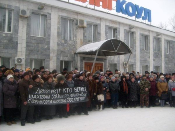 Напомним, 2200 сотрудников угольной компании «Кингкоул» два года не получают зарплату. Сумма задолженности составляет 350 миллионов. Компания проходит процедуру банкротства, шахты затоплены, директор «Кингкоула» Владимир Пожидаев находится под арестом с 12 августа. Шахтеры ежедневно пикетируют офис компании, держали две голодовки. Они требуют возмещения задолженности от государства, так как ни прокуратура, ни губернатор, ни министерство энергетики не реагировали на письма шахтеров о разрушении шахт и накапливающихся задолженностях и фактически допустили уничтожение лучших угольных шахт страны.