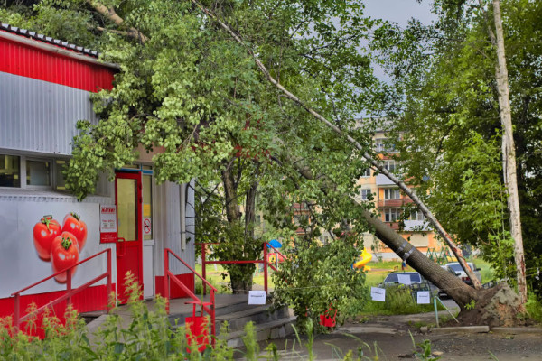 23 июня 2015 года. Краснотурьинск. Дерево упало на магазин после урагана. Фото: Вадим Аминов «Вечерний Краснотурьинск»