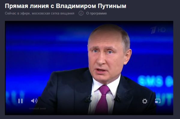 Посмотреть прямую трансляцию Прямой линии с президентом Путиным можно на «1 канале». Скриншот трансляции.