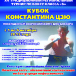 XV традиционный региональный турнир по боксу «Кубок Константина Цзю» стартовал в Серове 1 октября и продлится до 4 октября. Специальным гостем на турнире стал Константин Цзю.