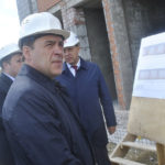 Первым делом губернатор Куйвашев (слева) посмотрел, как идет строительство жилого дома в поселке Вьюжный....
