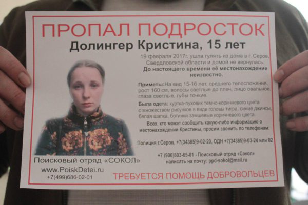 К розыскам 15-летней жительницы Серова Кристины Долингер подключились общественники-добровольцы, сообщил сегодня «Глобусу» Сергей Широбоков, руководитель отряда по поиску детей «Сокол».