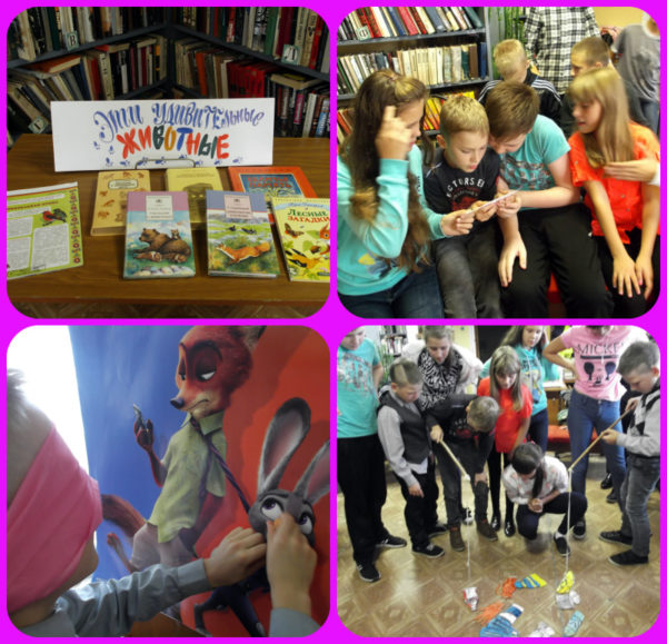 В этот день в читальный зал библиотеки были приглашены ученики двух шестых классов школы №26. Ребята активно участвовали в викторине, где им нужно было отгадать незамысловатые загадки про животных. Также школьники проходили различные испытания. Например после загадки про лягушку, им нужно было пропрыгать определенное расстояние повторяя движения угаданного животного. В завершении игры для ребят была представлена выставка книг о братьях наших меньших.
