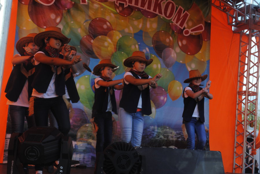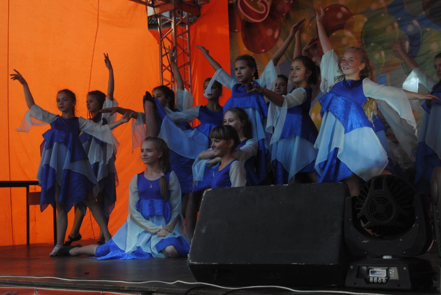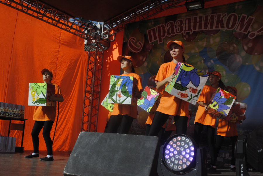 - Праздник начался с веселого танца с кубиками, из которых танцовщицы складывали герб Волчанска