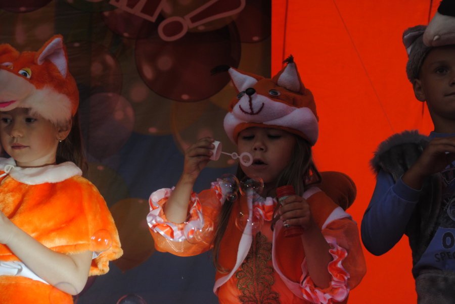 - Во время детской программы праздника детишки пускали мыльные пузыри, танцевали и отвечали на вопросы викторины